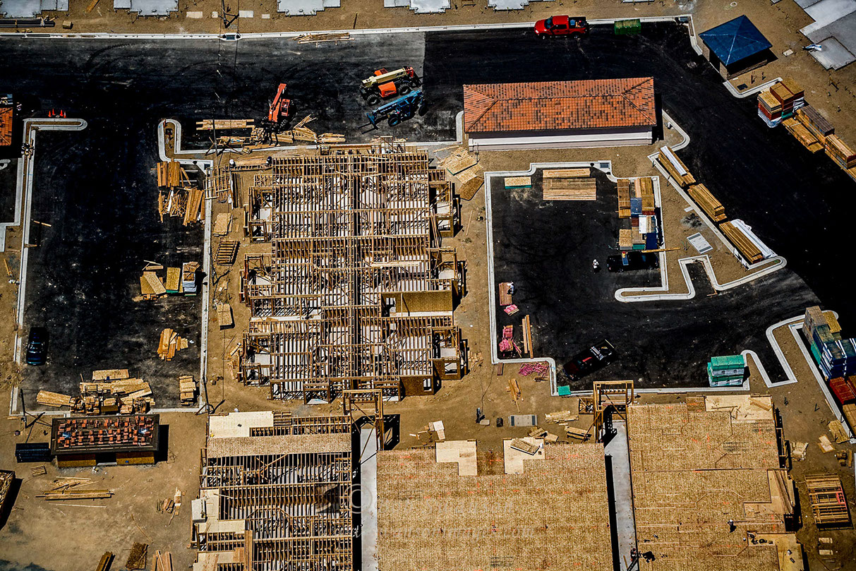Giant's Stadium under construction, marina and the Bay Bridge.
