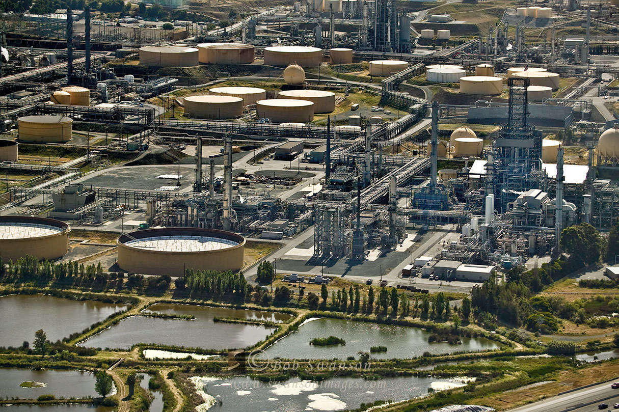 Brush fire at oil refinery near the Carquinez Bridge near Benicia, California