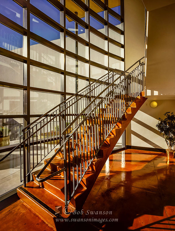 Concrete curved stairway and courtyard at the San Francisco SPCA Mission Adoption Center.
