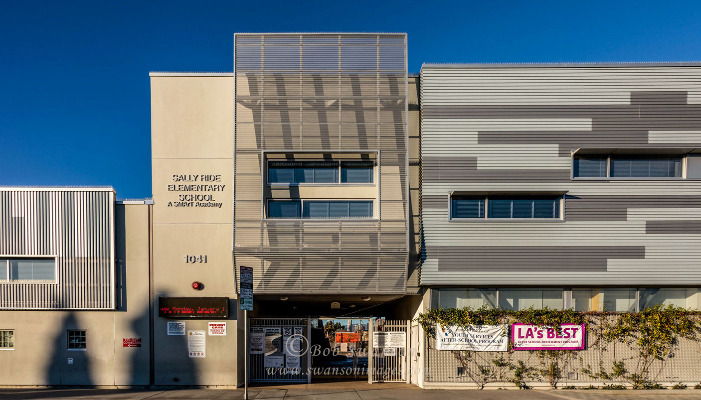 Main entry from playground at the Sally Ride Elementary School, East L.A., California