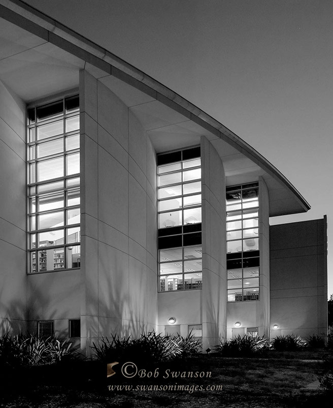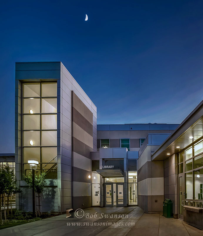 Hartnell community college library in Salinas, California for tBP Architects, with crescent moon, Salinas, California.