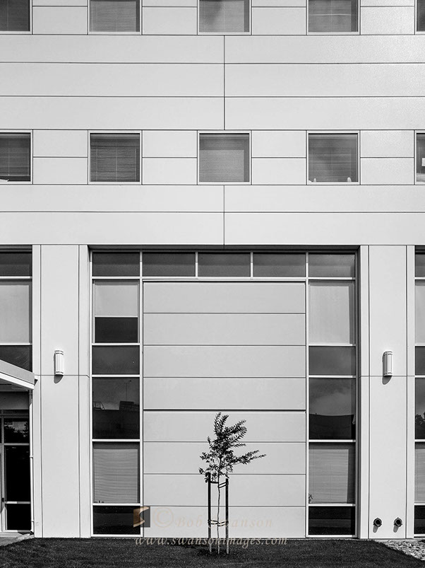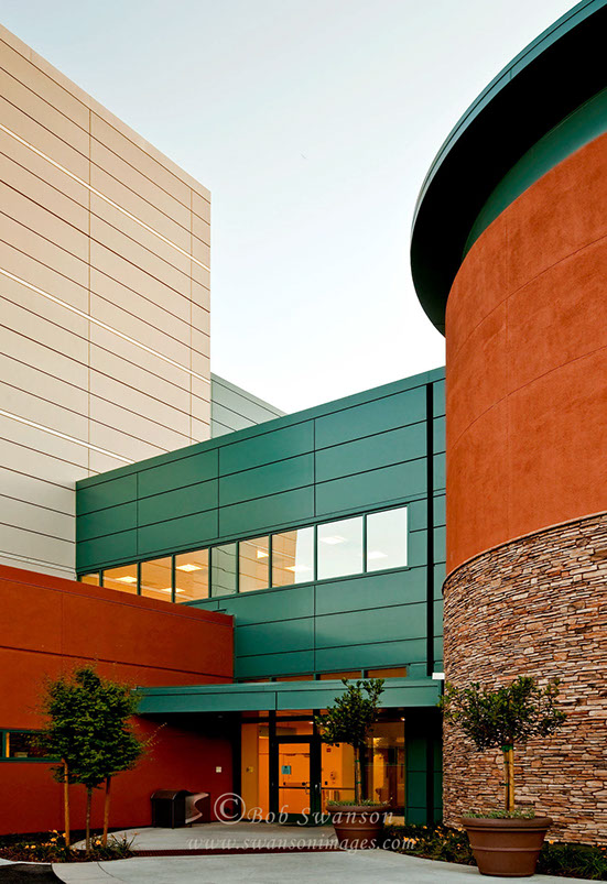 Siding detail of entry at Kaiser Hospital in East San Francisco Bay.