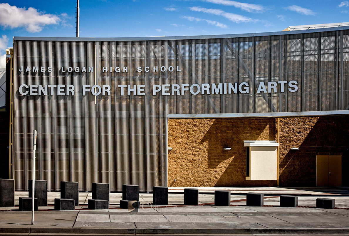Playground and exterior of Sally Ride Elementary School, East L.A., California
