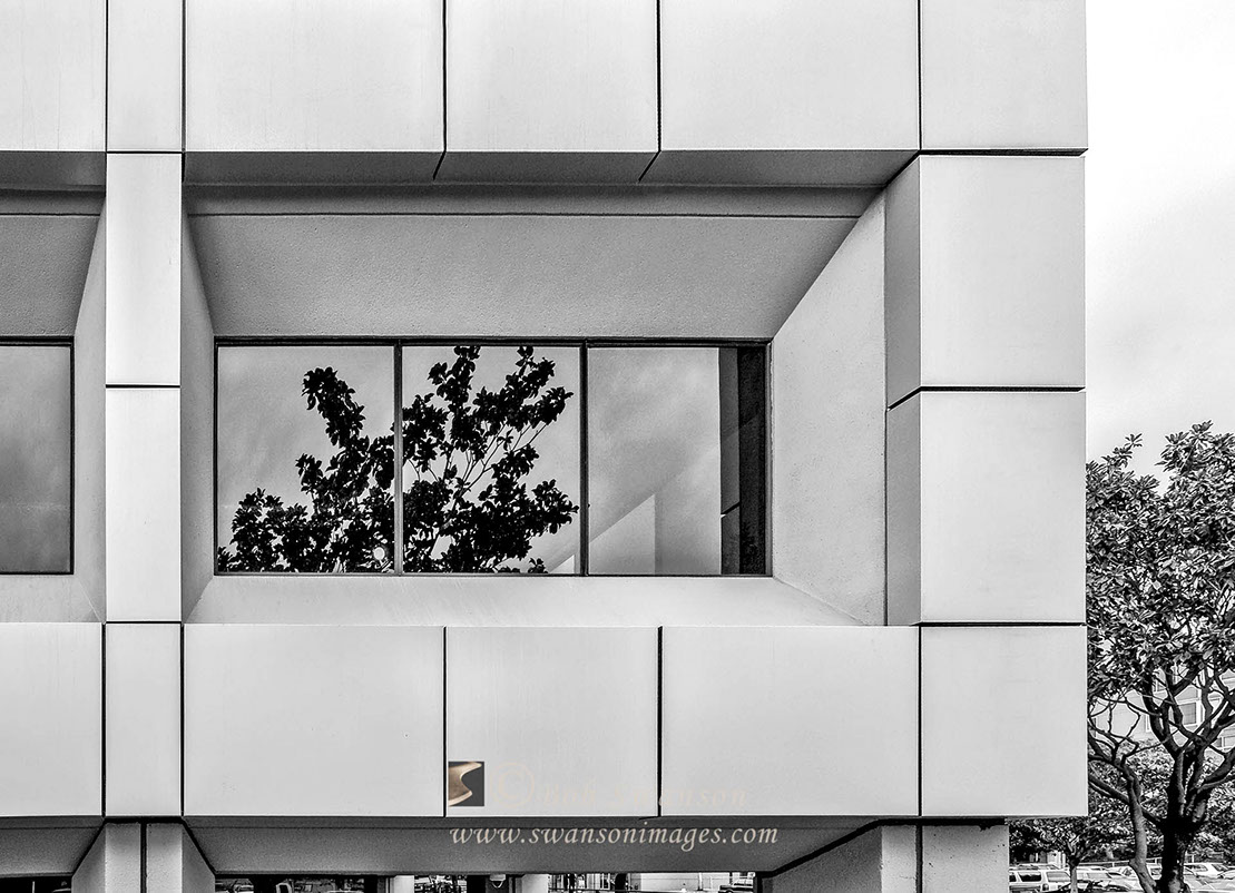 Black and white window detail. Sally Ride Elementary School, East L.A., California.