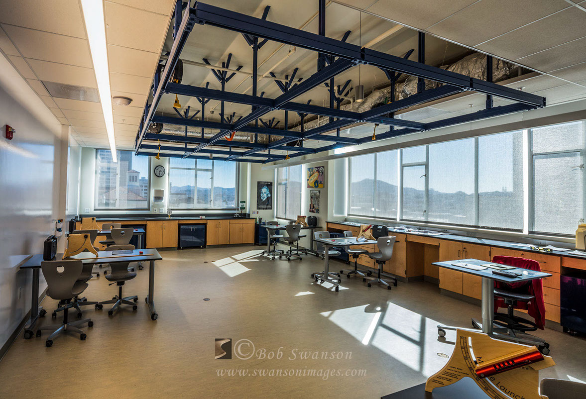 "Eye" ceiling configuration with skylight at San Jose City College Math and Science Building for tBP Architects
