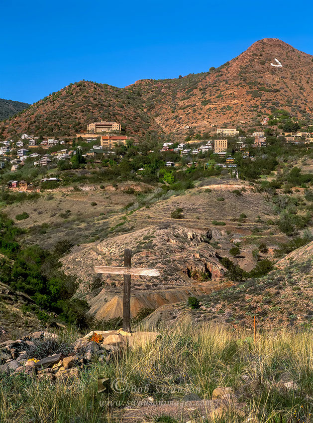 Graveyard cross with view of Jerome.