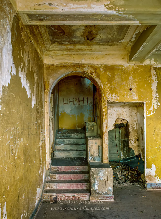 Stairway showing Spanish architecture of the ruins at the Daisy Hotel.
