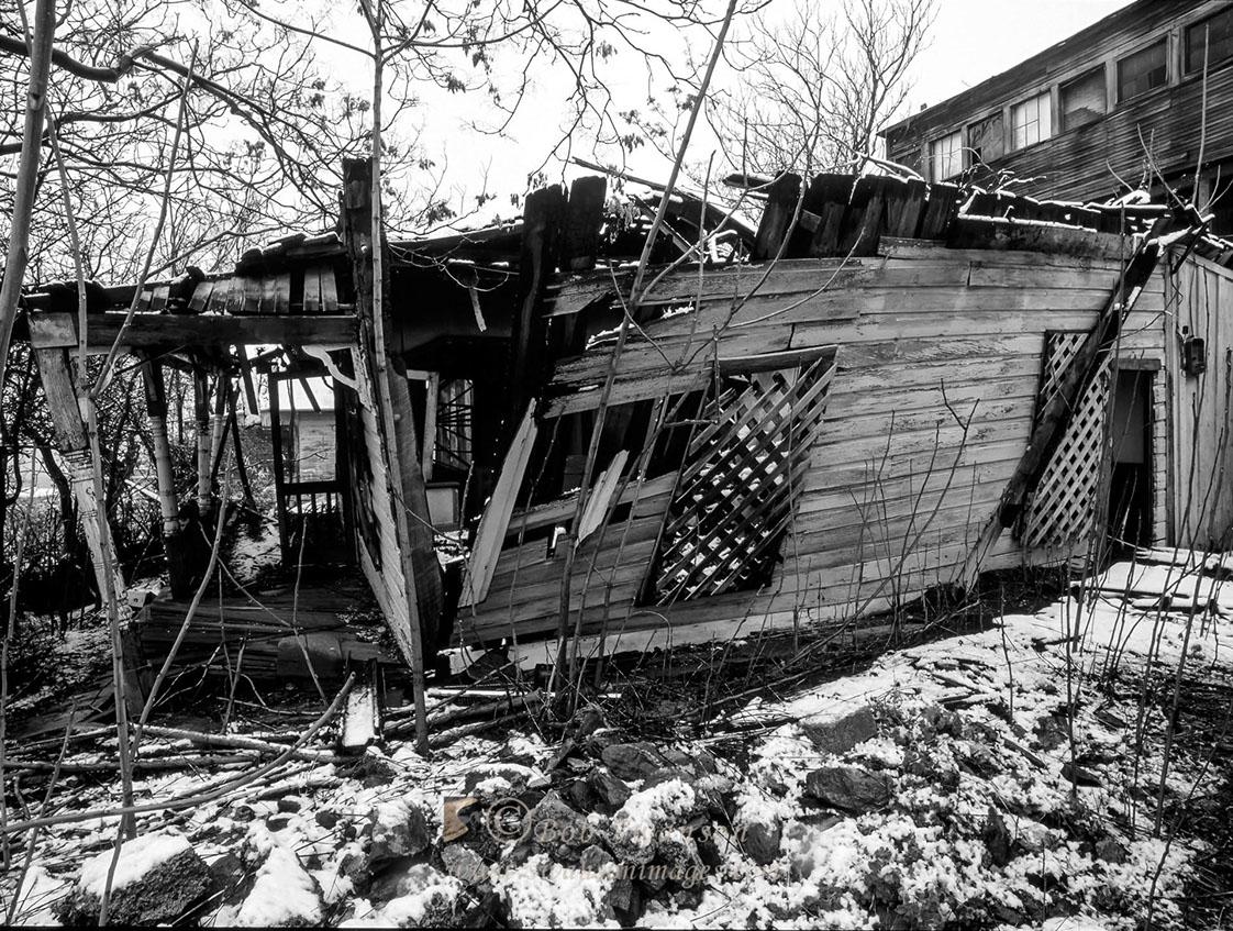 The shed in B&W.