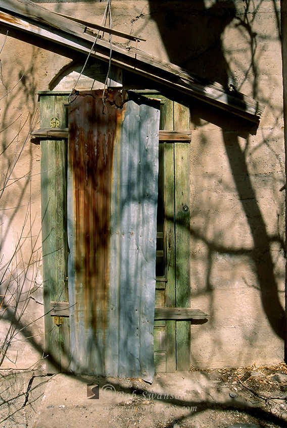 Protecting a doorway with corrugated steel.
