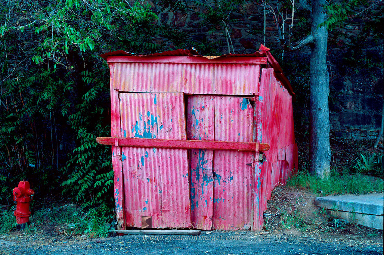 The "red shed" and fire hydrant.