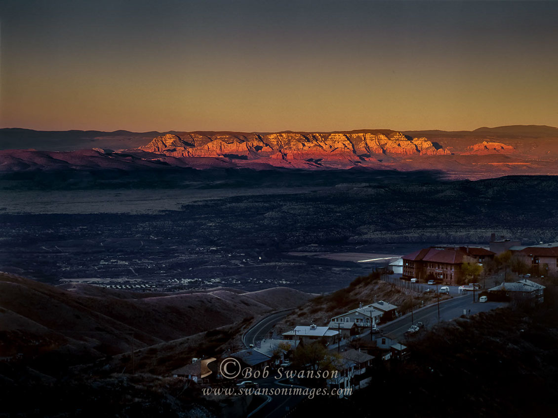 Deeper sunset on the Verde Valley, Kaibab Ridge and Jerome High School the headquarters of the Jerome Instrument Company.