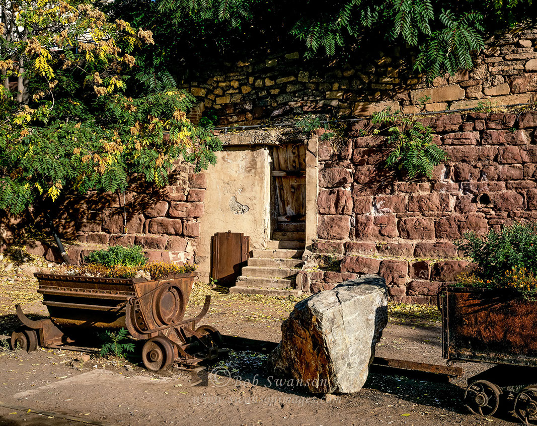 Stone Walls and mining cars as planters.