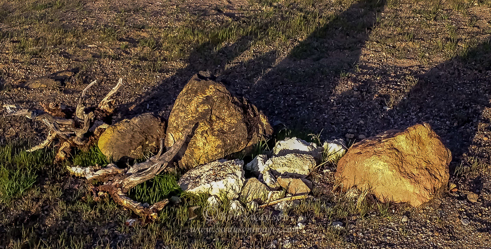 River rock and dry grass.