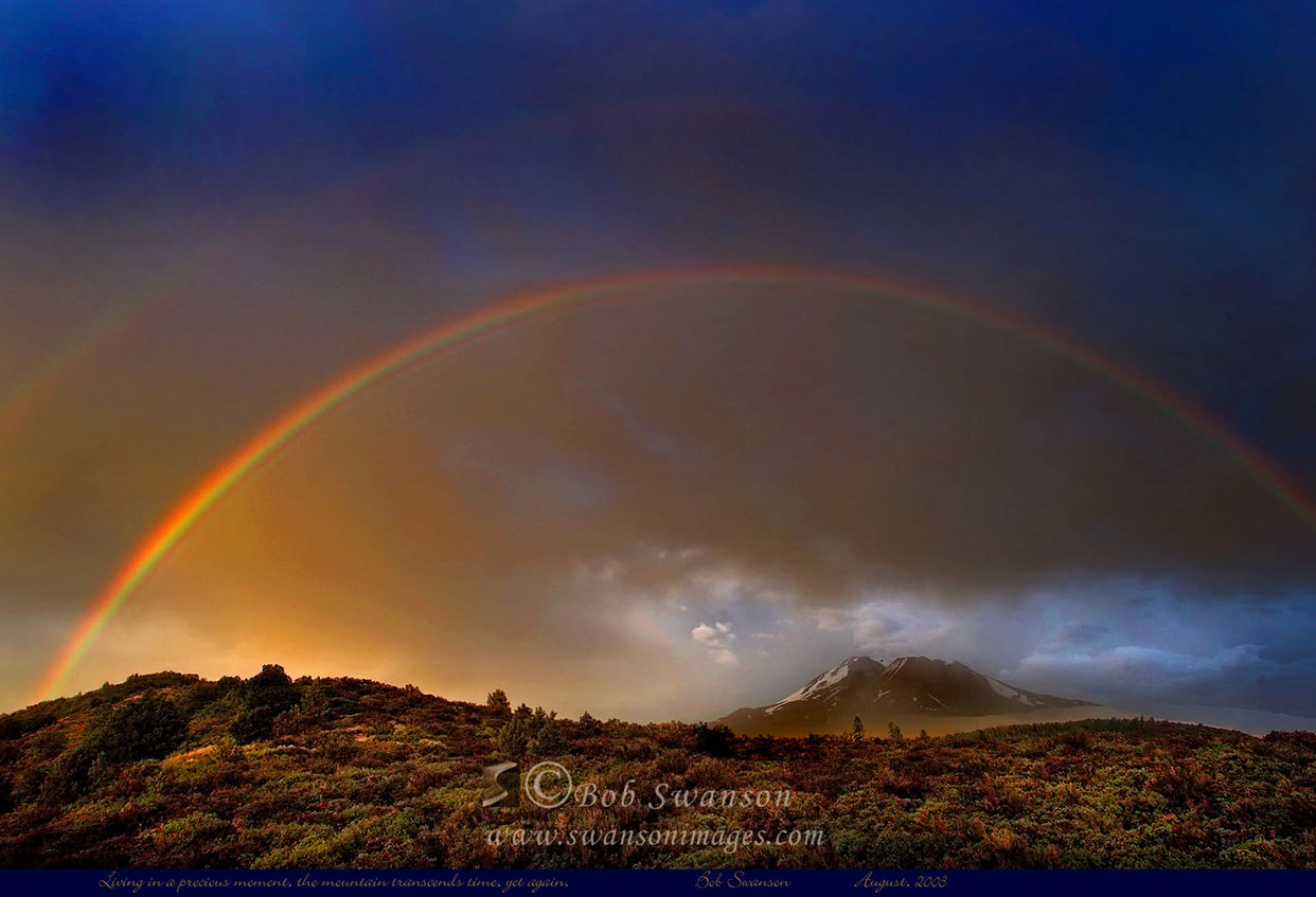 Double rainbow and Mount Shasta.