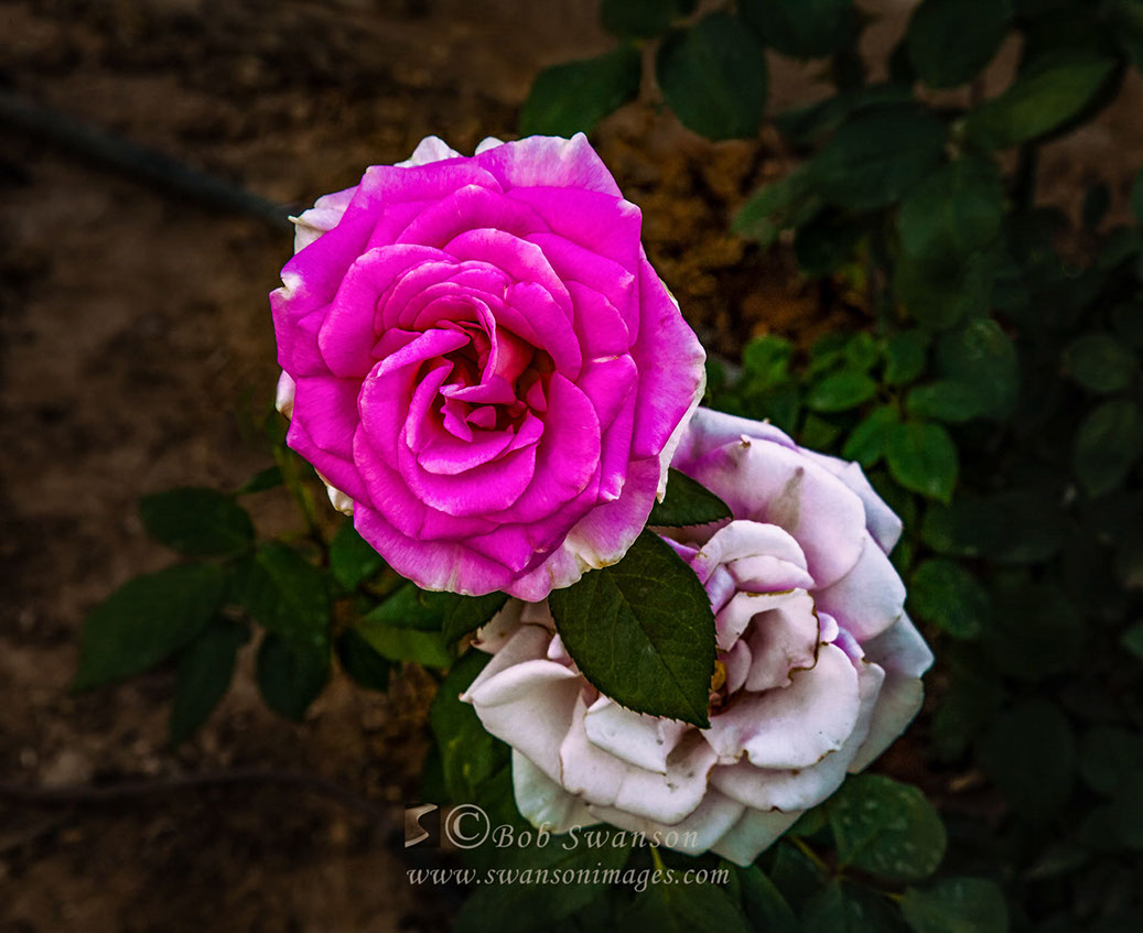Magenta and white roses.