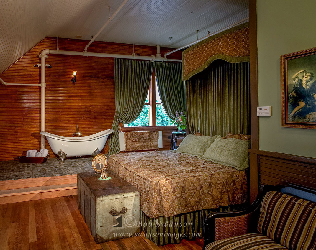 Bedroom. McCloud Mercantile Mall, Bed and breakfast period rooms and exteriors.