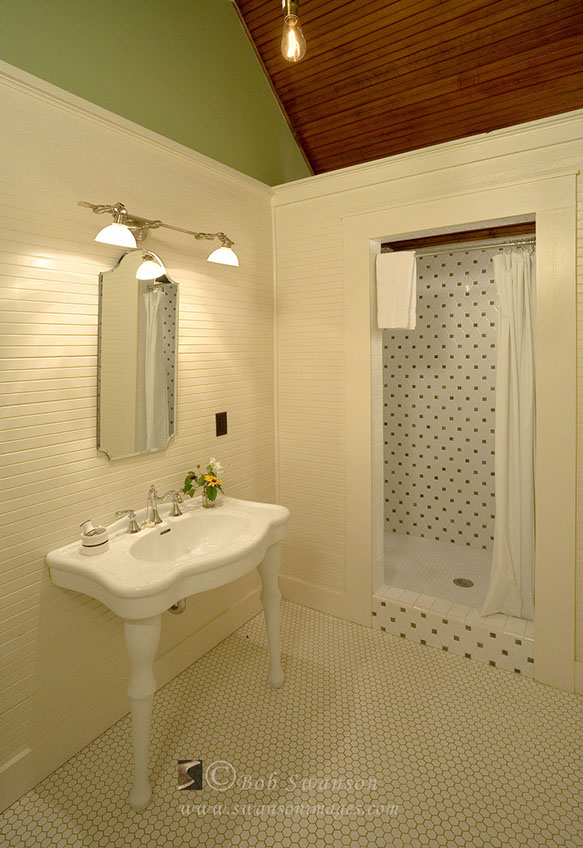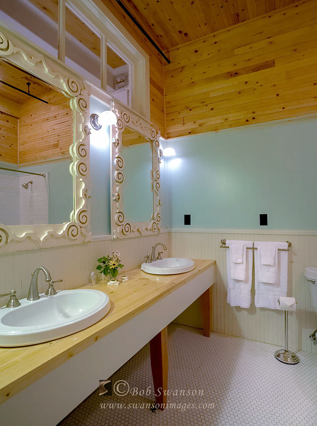 Dual sinks. McCloud Mercantile Mall, Bed and breakfast period rooms and exteriors.