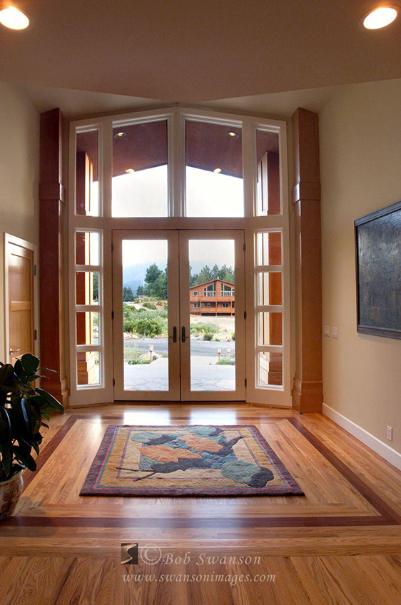 Detail of Wilder residence entry and Mt. Shasta. Ron Stevens, Architect.