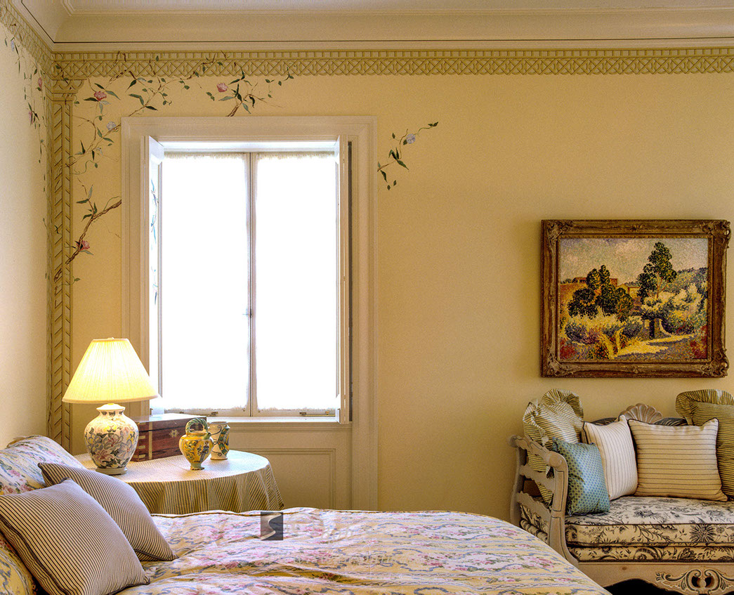 Wood floor bedroom with antique furnishings