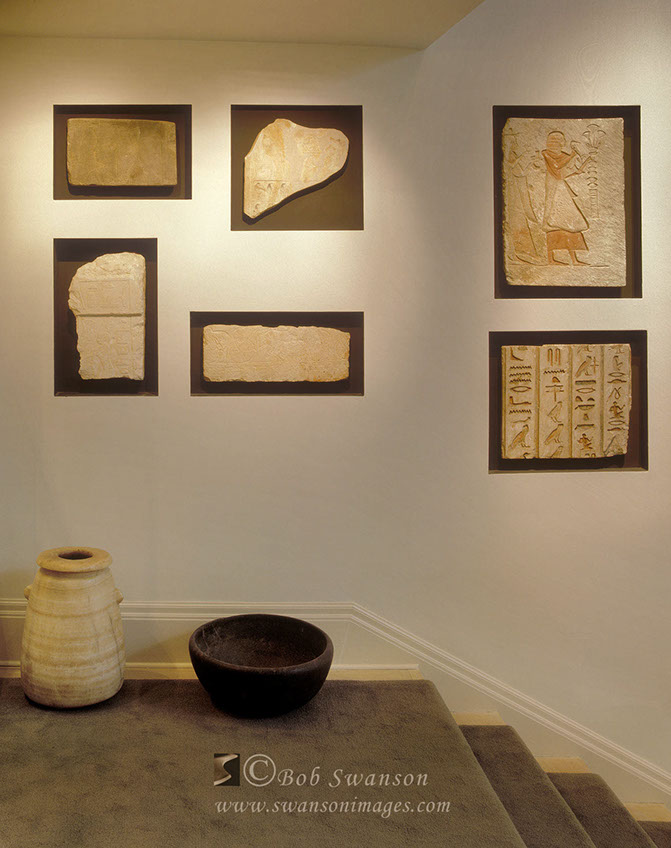 Egyptian glyphs and pottery and stairway at the historic restored replica of La Petite Trianon (Versailles) in San Francisco, California