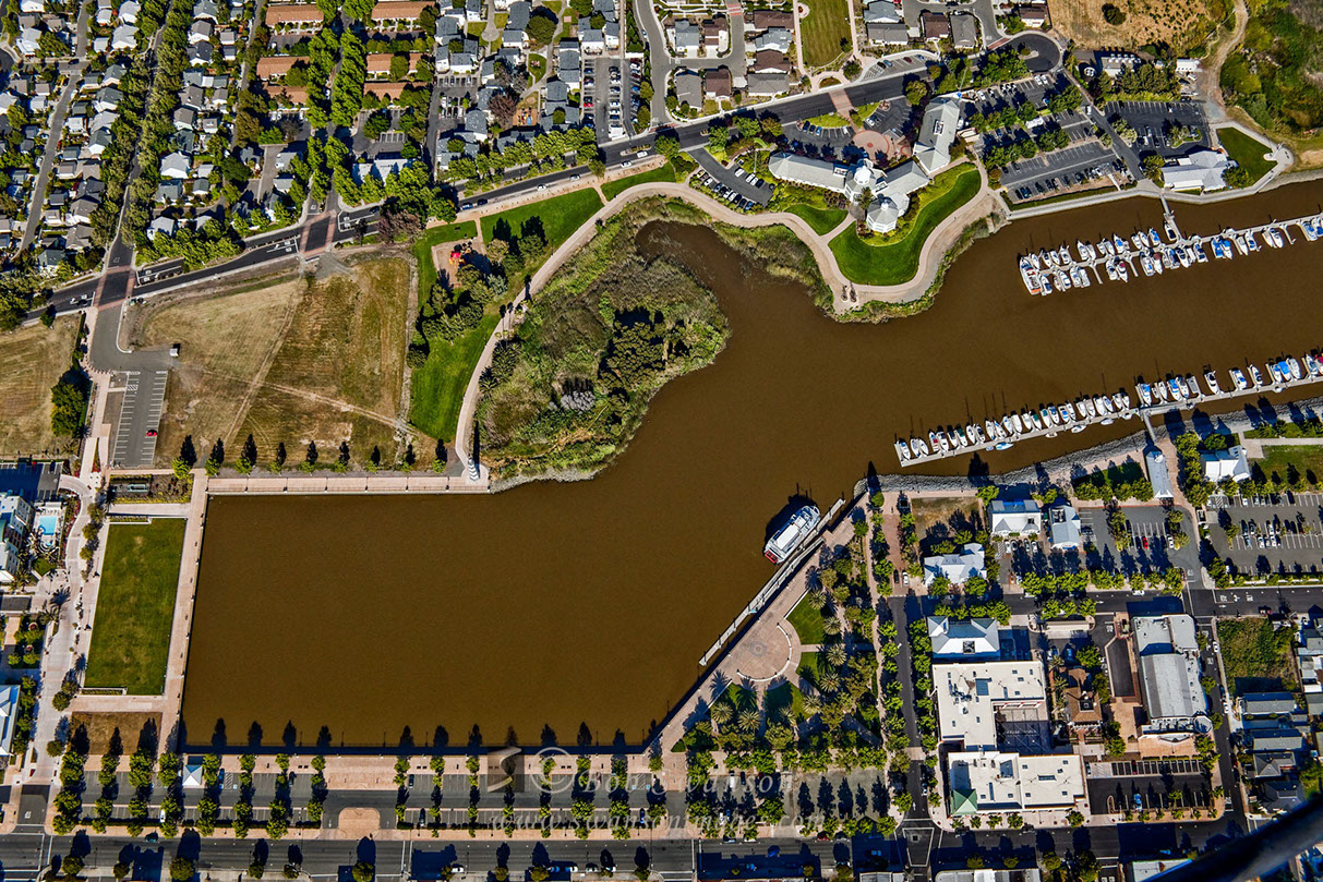 Giant's Stadium under construction, marina and the Bay Bridge.