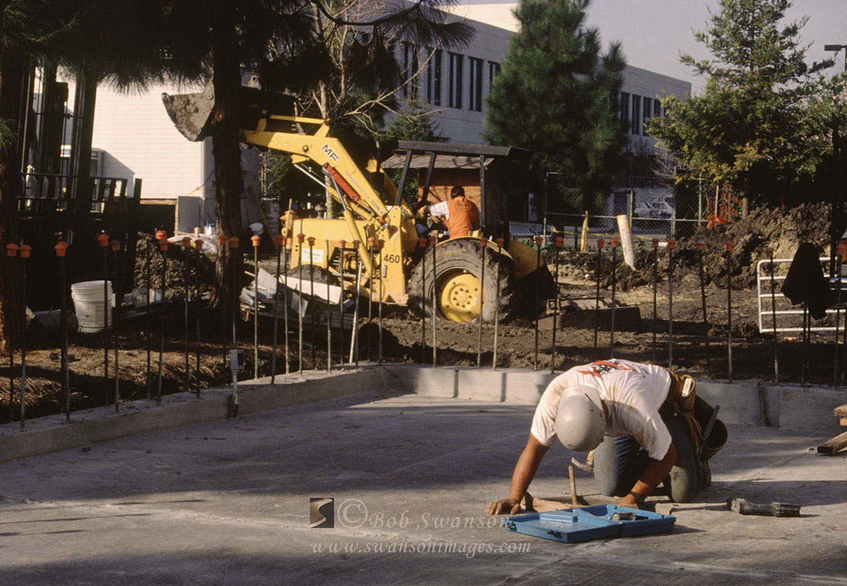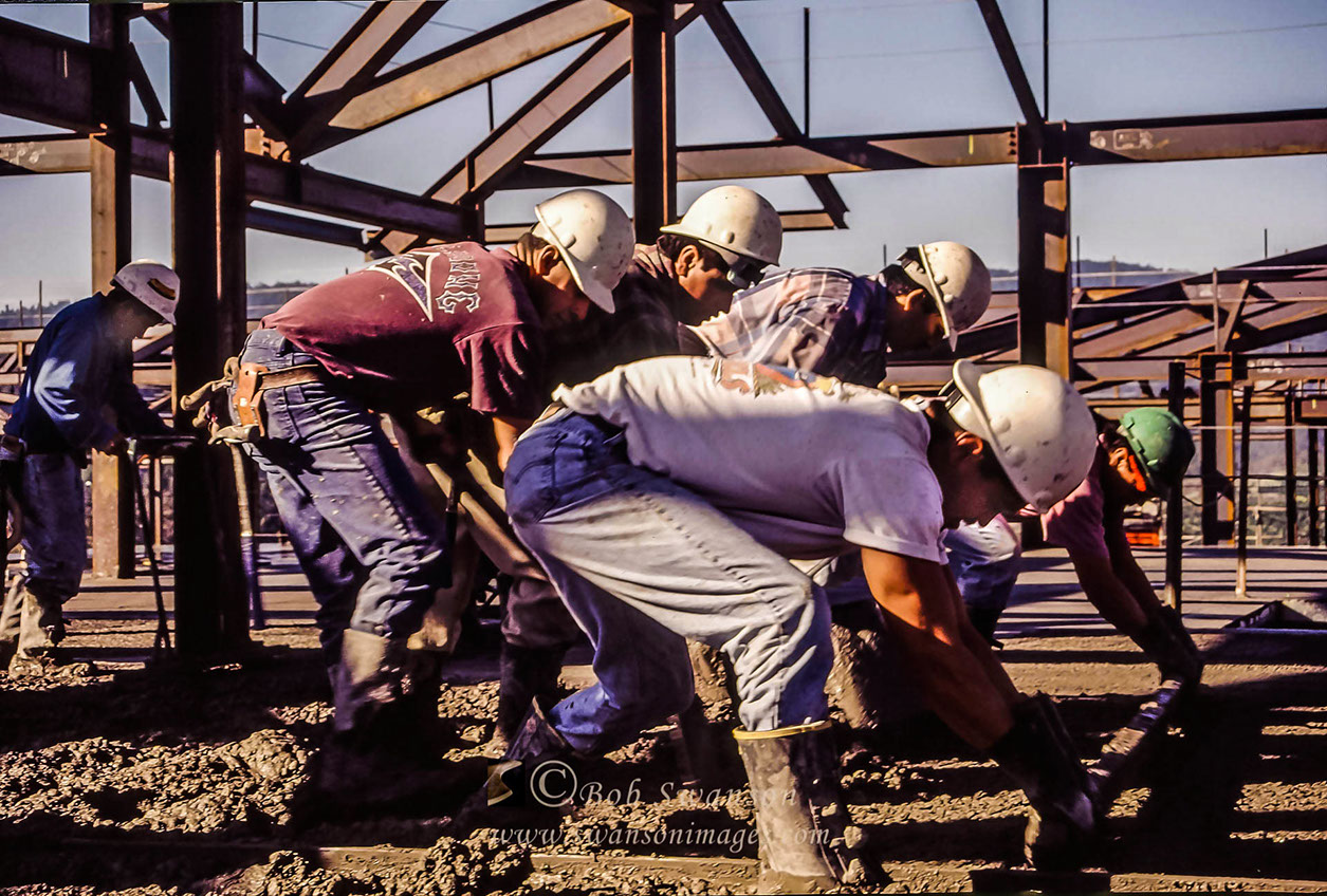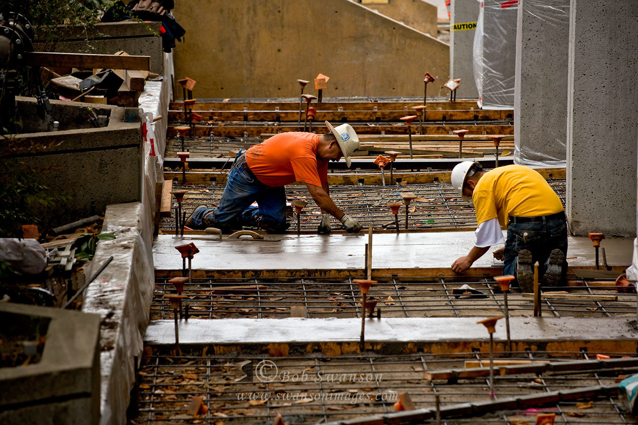 Concrete Finishers working on exterior structural slab on 3rd St., San Francisco.