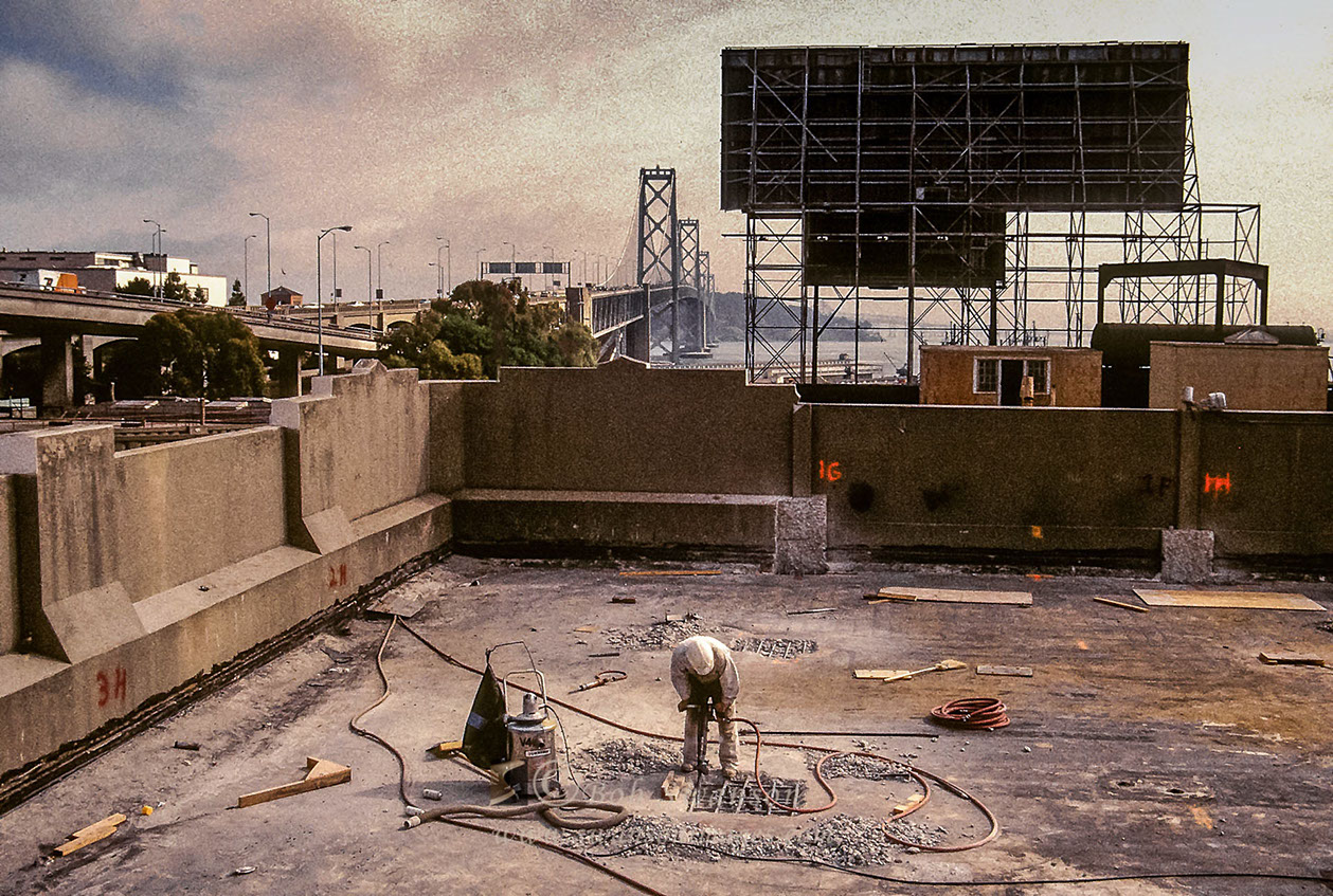 Readying the bases for structural steel supports for the new 4 story addition by the San Francisco Oakland Bay Bridge.
