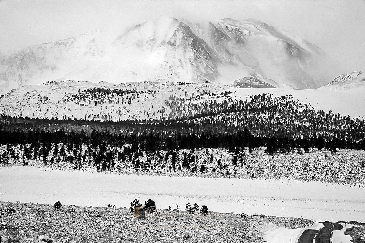 Mount Lewis and highway 120 in winter.
