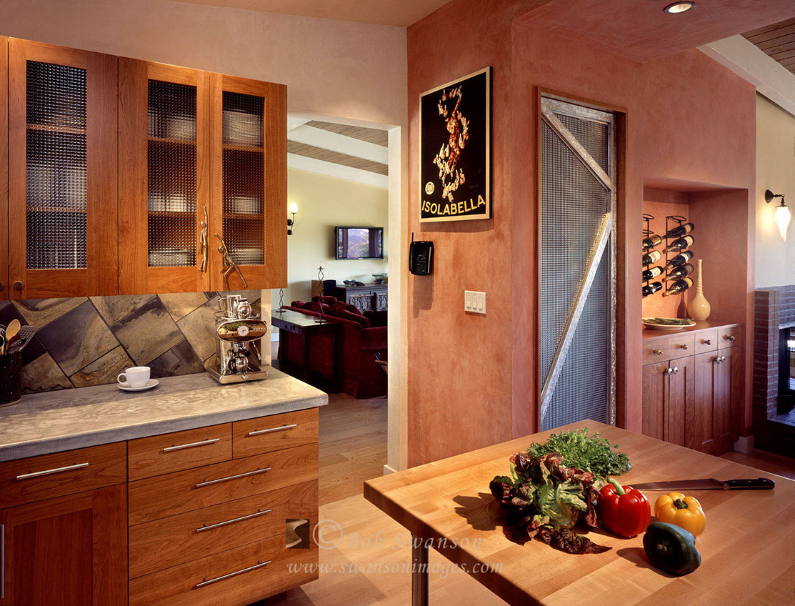 Detail of Wilder residence entry and Mt. Shasta. Ron Stevens, Architect.
