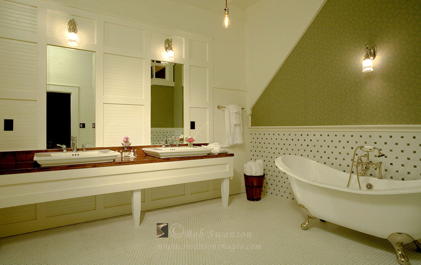 Dual sinks. McCloud Mercantile Mall, Bed and breakfast period rooms and exteriors.