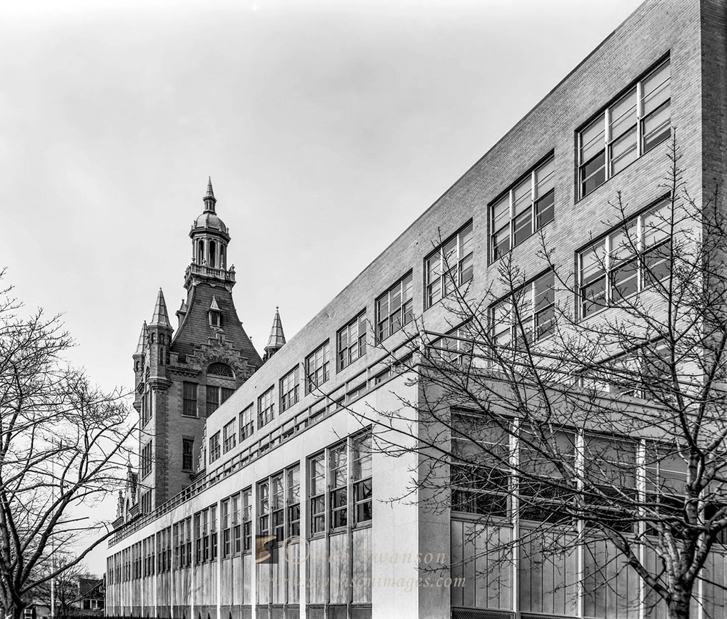 The "New" addition and the old tower at Newtown High.