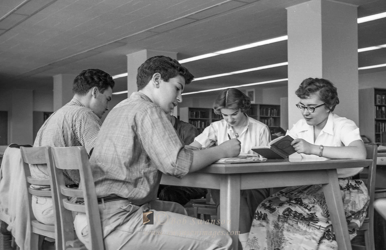Studying in the library.