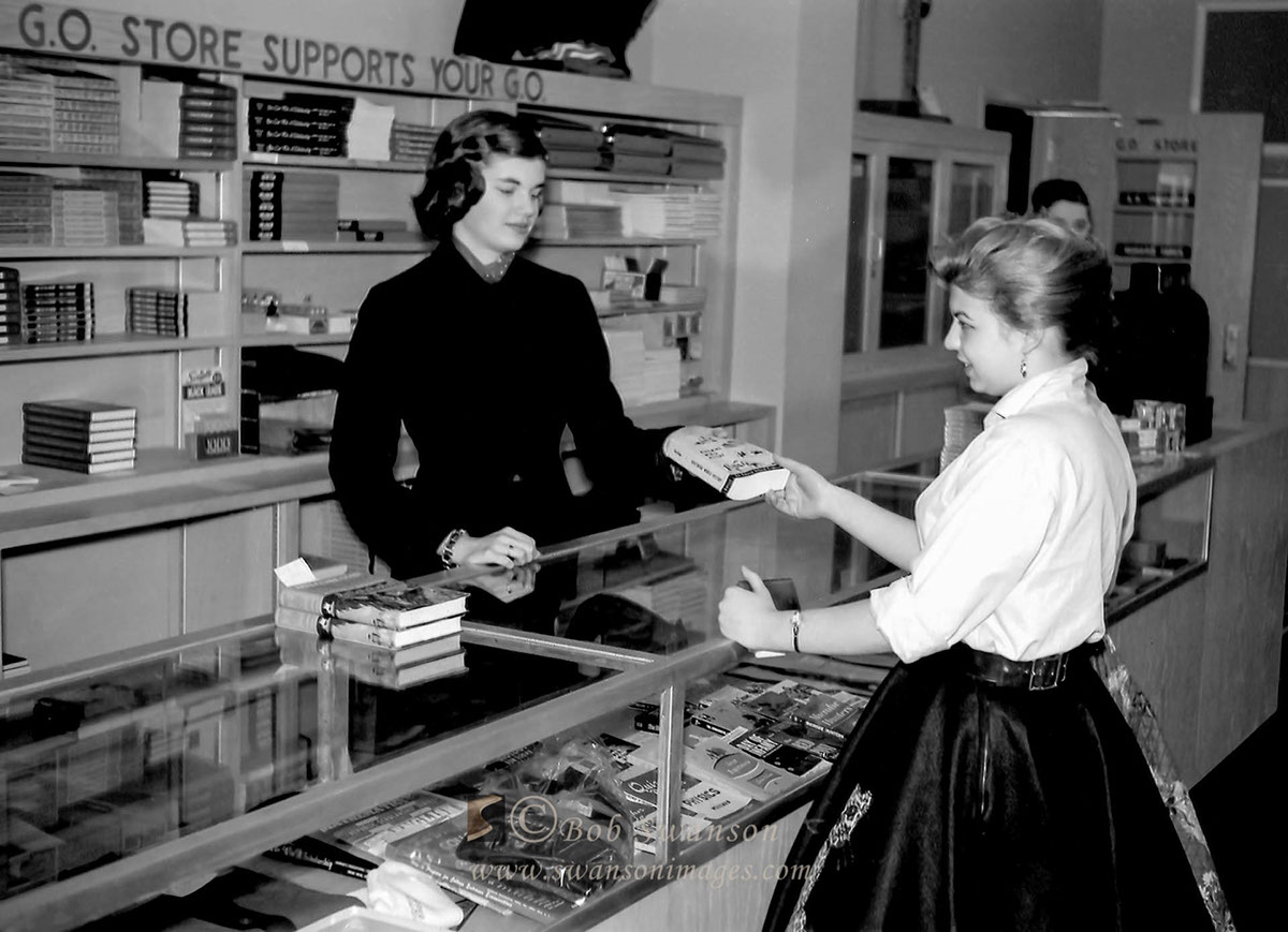 Buying a book at the G. O. Store.