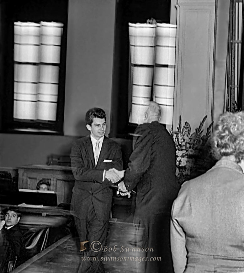 Getting his diploma.
